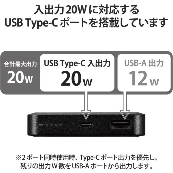エレコム モバイルバッテリー 大容量 急速充電 12000mAh USB パワーデリバリー20W C×1+A×1 リン酸鉄20W USB-A 出力 1ポート ブラック DE-C39-12000BK