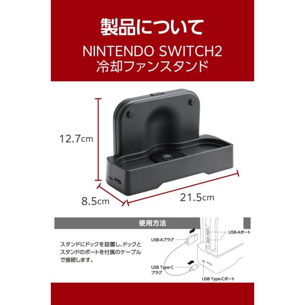 ●NINTENDO SWITCH(TM) 2 をドックごと冷却し、テレビモード中の機器本体の発熱を抑える冷却ファンスタンドです。