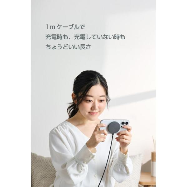 〜最大25W出力で、ワイヤレス充電がもっと速くなる。Qi2 25W対応のスマートフォンを高速充電できる、マグネット式ワイヤレス充電器です。基板をコネクター側に分散することで、発熱を抑える設計。スマートフォンの背面にぴったりくっつき、操作しながらの充電も快適です。〜
