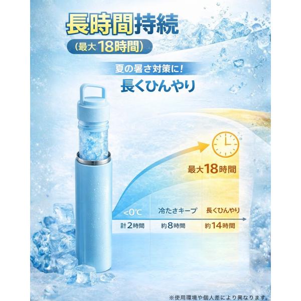 スティック型氷のうをボトルに入れて持ち運べる冷却グッズ。