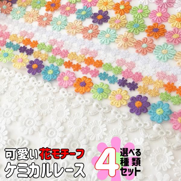 \選べる4種類/ケミカルレース 花 カラフルな花びらが可愛いモチーフレース≪かわいい 子供 入園 入学 花 小花 フラワー≫メール便送料無料 マーガレット