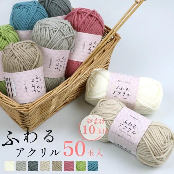 [まとめ買い 選べる50玉+オマケ10玉=合計60玉] 【ふんわり系アクリル毛糸 まとめ買い】ふわるアクリル60玉入 アクリル100% 極太 約40g 約40m 夏糸 毛糸