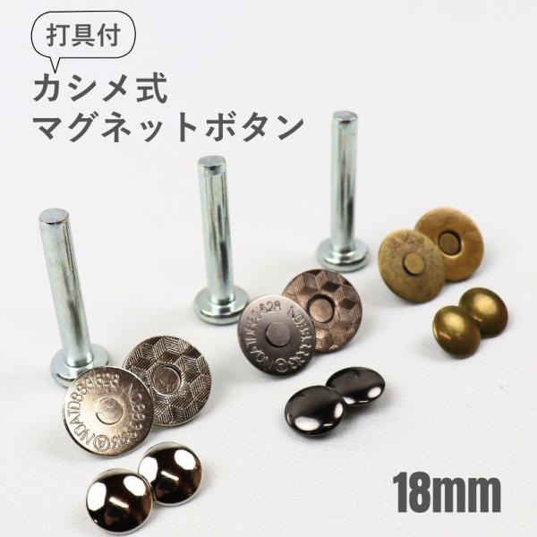 カシメ式マグネットホック 18mm 打ち具付き 簡単取付 バッグ ポーチ 磁石ボタン ハンドメイド 手芸 シルバー ブラック アンティークゴールド KMB