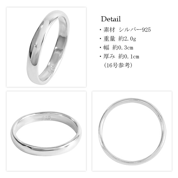 プレーン シルバー リング 幅3mm 甲丸 細身 3〜23号 メッセージ刻印 名入れ可 指輪 メンズ レディース ユニセックス シルバーアクセサリー 爆買