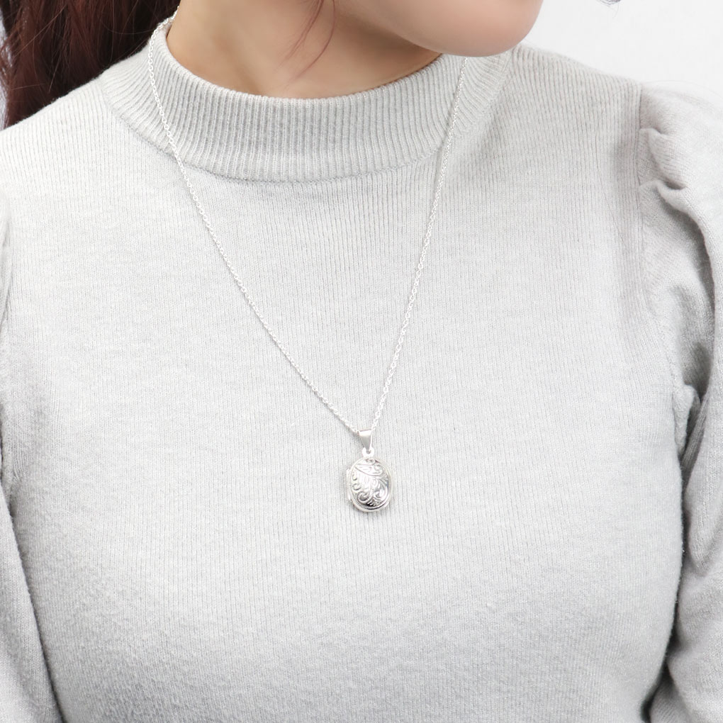 オーバル 植物 装飾 総柄 エッグ ロケット ネックレス ペンダント ペンダントトップ ペンダントチャーム シルバー925 ツタ 蔦 唐草 楕円 写真入れ 爆買