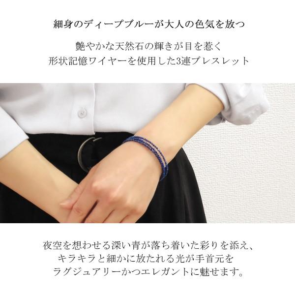 ラピスラズリ ブレスレット レディース 高品質 2mm 天然石 おしゃれ アンクレット 3連 青 フリーサイズ 形状記憶ワイヤー 爆買