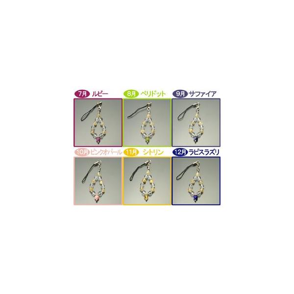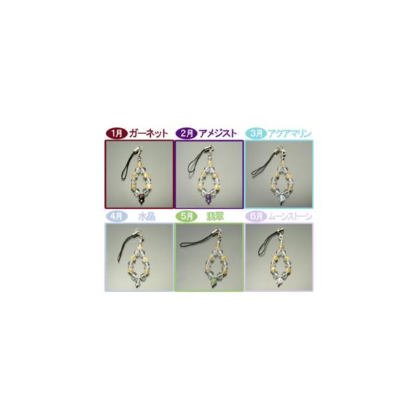 水晶とルチルをベースに、それぞれの誕生石を一玉セットしたストラップです。