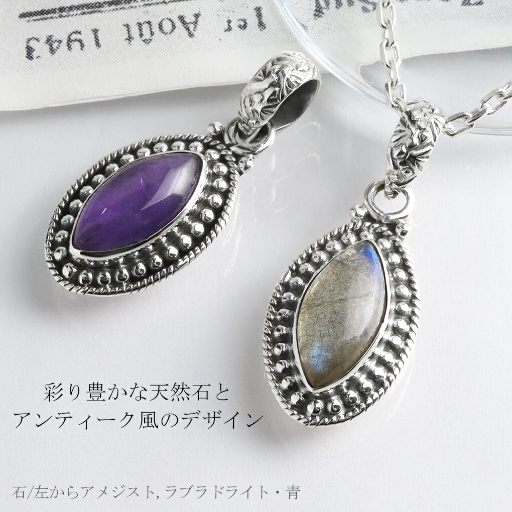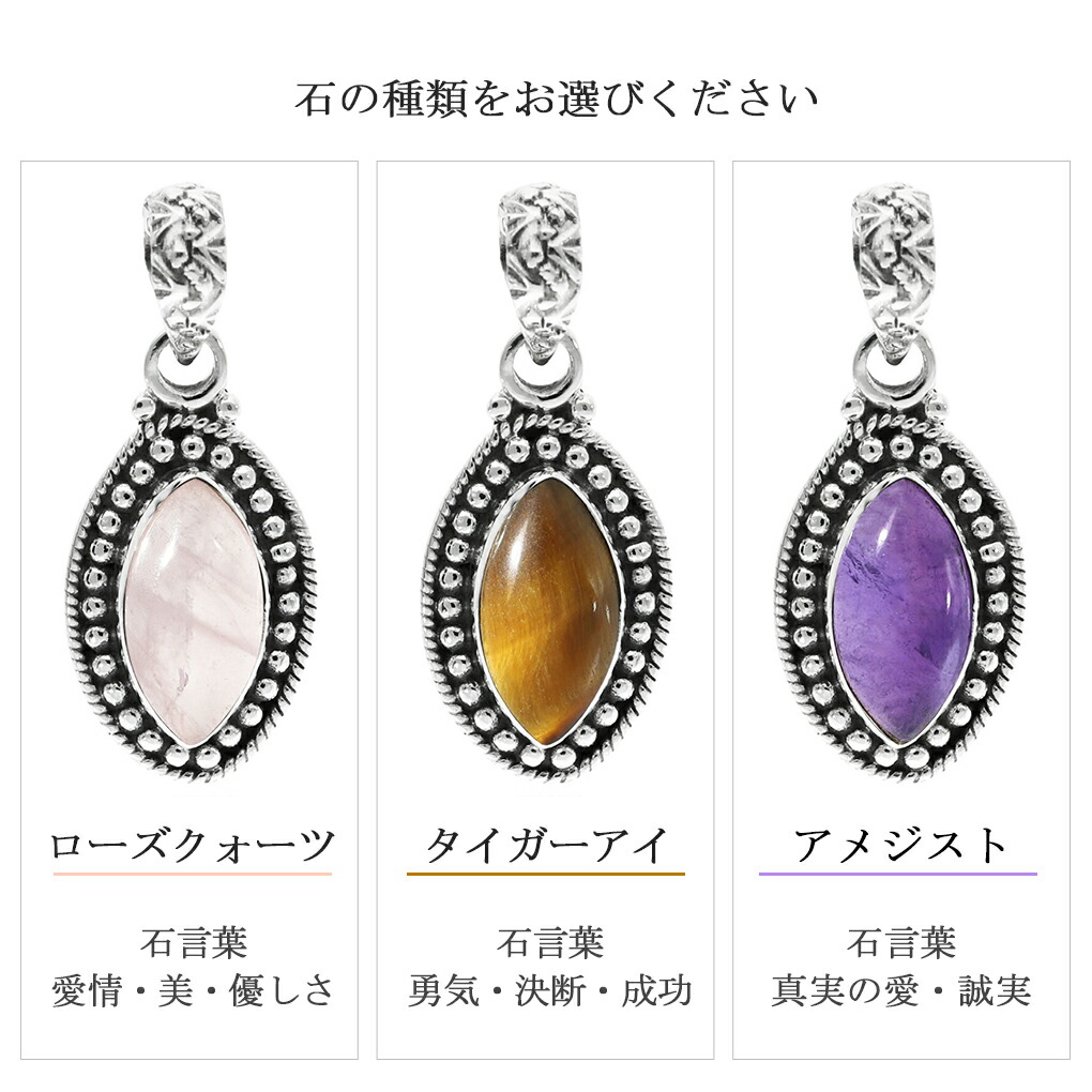 選べる 天然石 マーキス シルバー ネックレス ペンダント ペンダントトップ アメジスト オニキス タイガーアイ ラブラドライト ローズクォーツ 爆買