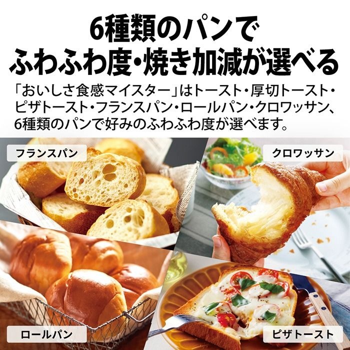 ・過熱水蒸気量を調整することで、「サクッ」「ふわっ」「もちっ」など好みの食感を15段階で選べる「おいしさ食感マイスター」を搭載
