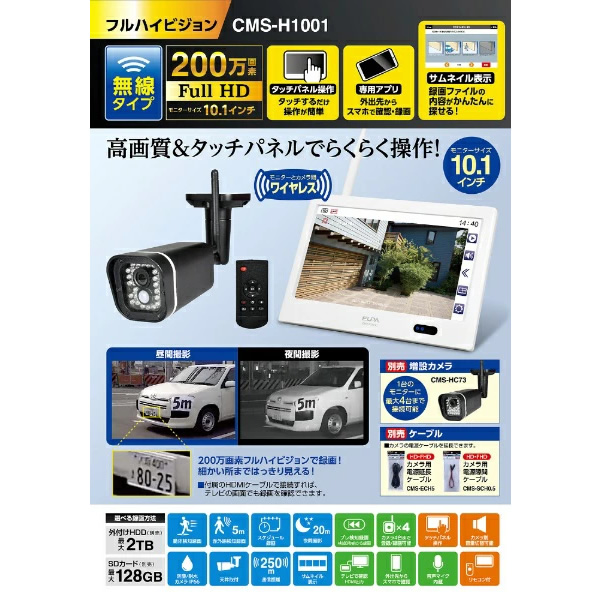 防犯カメラ 10型 ワイヤレスカメラ タッチパネル スマホ対応 フルハイビジョン ELPA 朝日電器 CMS-H1001 ホワイト/srm