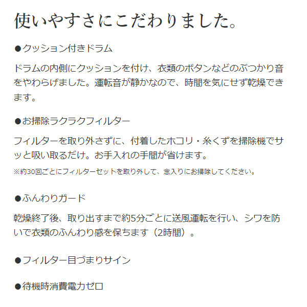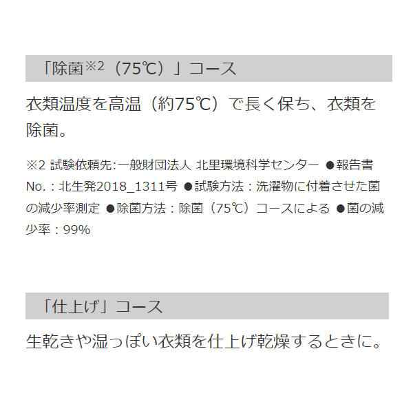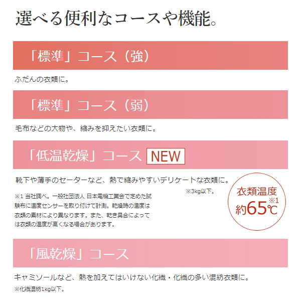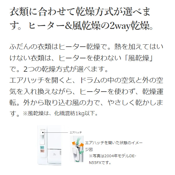 衣類に合わせて乾燥方式が選べます。ヒーター&風乾燥の2way乾燥。