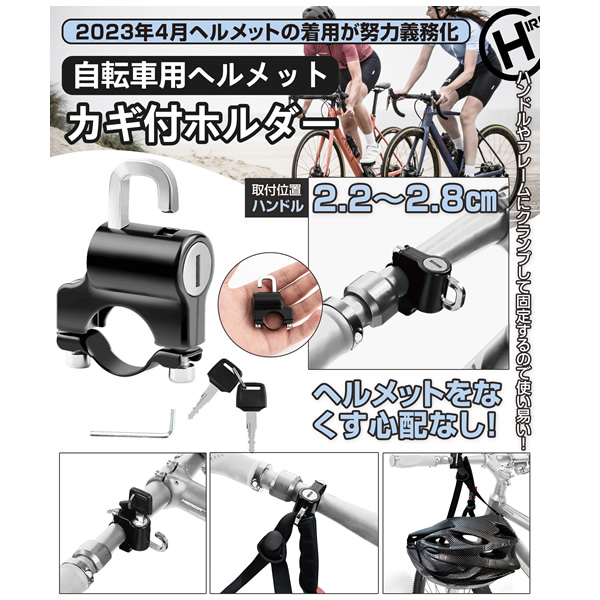 自転車用ヘルメット カギ付きホルダー HED-0333 対応ハンドル 2.2〜2.8cm 盗難防止/srm