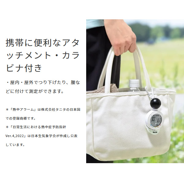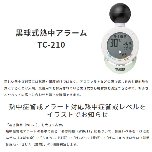 タニタ 黒球式熱中症指数計 熱中アラーム TANITA 黒球式熱中アラーム TC-210 暑さ指数 WBGT表示 輻射熱 屋外 屋内 アタッチメント・カラビナ付き/srm