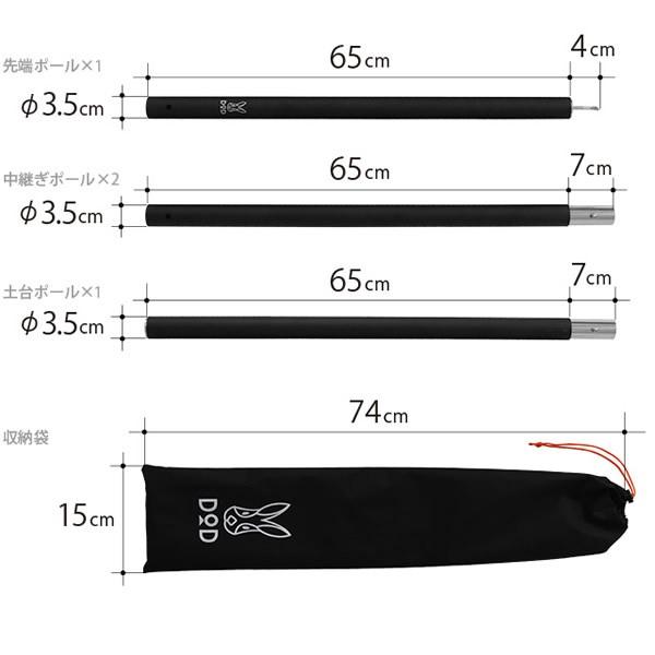 XP8-632-BK DOD 極太アルミ製タープポール ハイパームテキポール 260cm アルミ【安心の太さ35mm】 ブラック/srm
