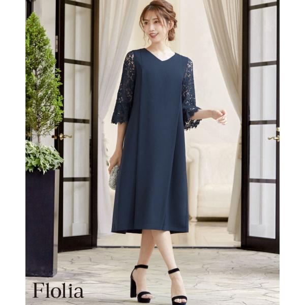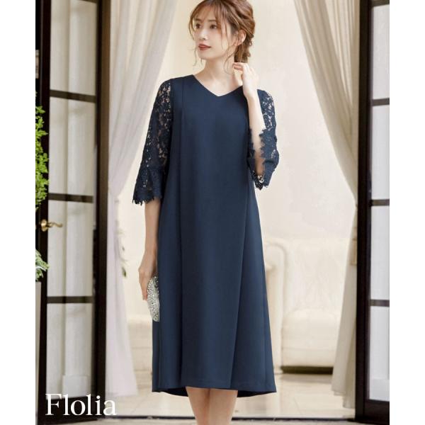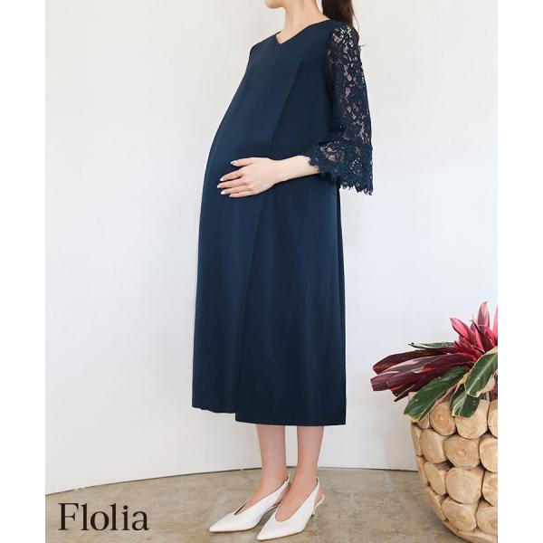 パーティードレス 結婚式 ワンピース ドレス ロング 大きいサイズ 袖あり レース ミモレ丈 ゆったり 30代 40代 洗える マタニティドレス Aライン レーススリーブ