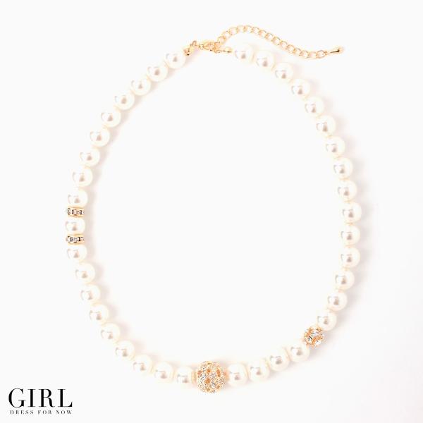 メール便送料無料 アクセサリー ネックレス パールネックレス パール キラキラ ラインストーン ミラーボール カニカン&アジャスター ホワイト ゴールド 甘め 結婚式 パーティー 二次会 謝恩会 食事会 カジュアル 七五三 春 夏 秋 冬 通販