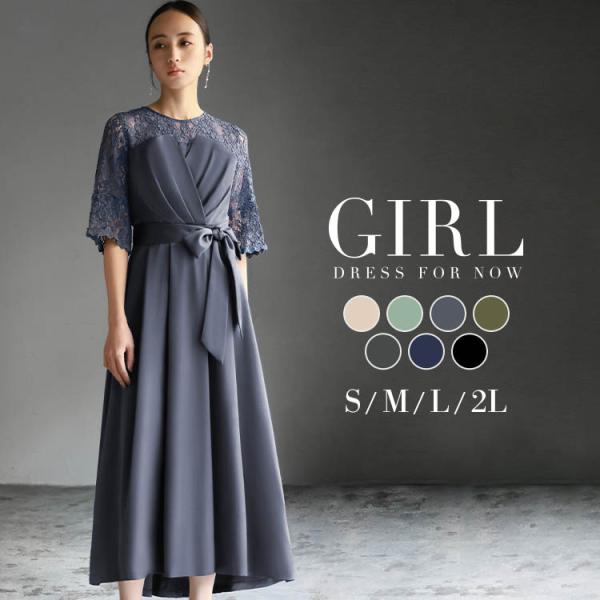 結婚式 ワンピース パーティードレス ドレス ロング丈 ロング 袖あり レース 大きいサイズ ミモレ丈 ゆったり 小さいサイズ 30代 40代 お呼ば