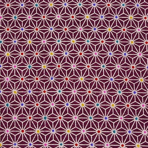 衿元も飾ってお洒落に。紫紺色地に、白の麻の葉文様です。