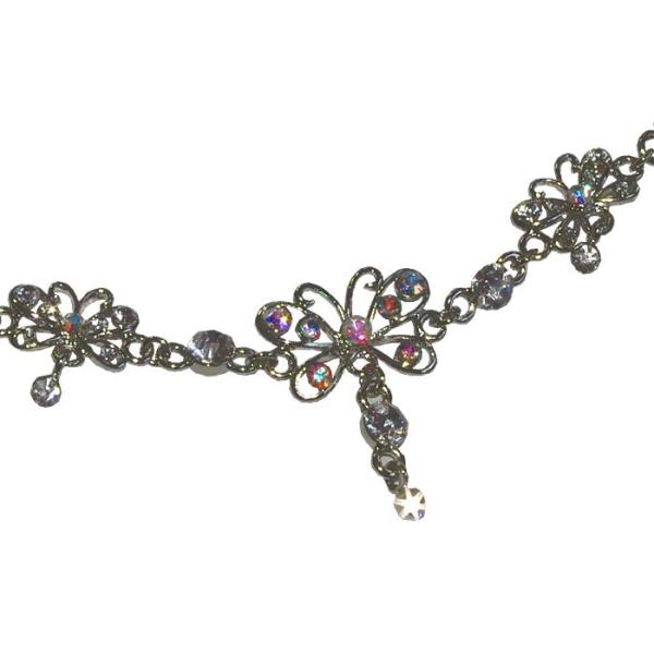 シルバーのチェーンに3羽の蝶々と大小スワロビーズ付き