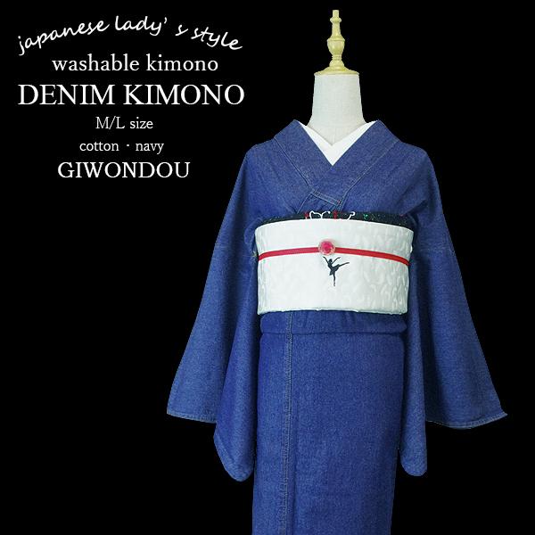 洗える着物 袷着物 単品 レディース きもの モザイク柄×薔薇 青 レトロモダン 大人かわいい 普段着・お出かけ・デート・映え M/L 2025年新作 |40代 50代 60代