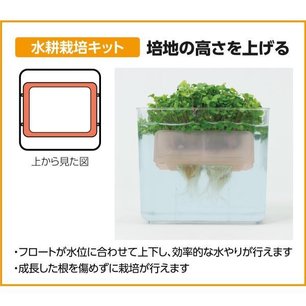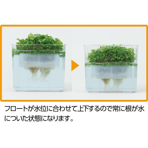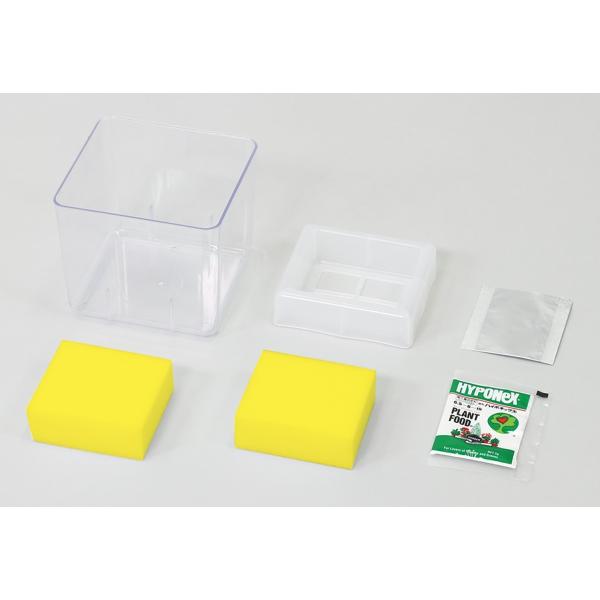 商品説明:水耕栽培とスプラウト育成を同じ容器で行えるマルチユニット 商品サイズ:組立時:100×105×90mm、スポンジ:70×62×25mm 包装形態:化粧箱 包装サイズ:115×125×113 重量:144g セット部品:水耕栽培ユニット容器×1、水耕栽培ユニットフロート×1、スポンジ×2、水耕栽培用種×1、ハイポネックス 5g×1、ワークシート×1 材質:容器:PS、フロート:PP、スポンジ:PU 販売単位:1セット