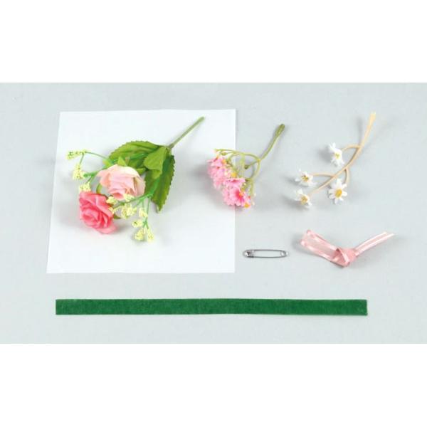 3種類の花を束ねてリボンをつけると、豪華で素敵なコサージュやブーケが作れます!簡単!豪華!裏の安全ピンで胸に飾れます。セット内容/花×3、セロハン(白:140×140mm)×1、リボン×1、フローラルテープ×1、安全ピン×1花×3、セロハン(白)×1、リボン×1、フローラルテープ×1、安全ピン×1約125×80mmポリエステル、PP、鉄、シルク