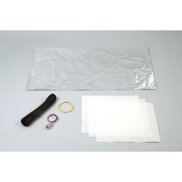 備長炭電池の実験ができるセットです。食塩水・オキシドールを準備すれば電池ができます。(食塩水のみでも製作は可能です。)豆電球を1.5V 0.3A→2.2V 0.11Aに変更。(微電流で点灯しやすい為)2011.03.07備長炭×1、ビニール導線(1m)×1、キッチンペーパー×3、アルミホイル25×50cm×1、豆電球(2.2V 0.11A)×1、ソケット×1備長炭サイズ:φ20〜30mm、長さ100〜150mm