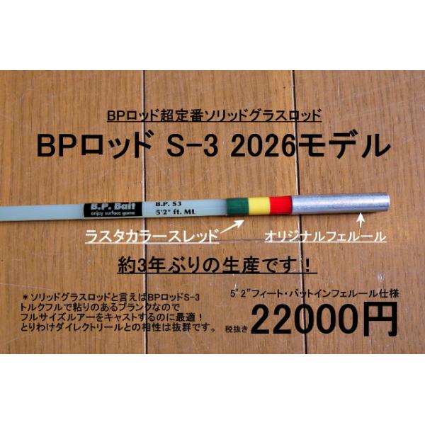 BPベイト BPロッド S-3 ラスタカラー (5.2ft/ソリッドグラス) ・ご予約受付