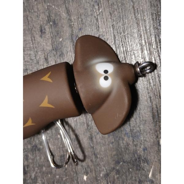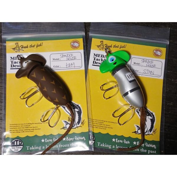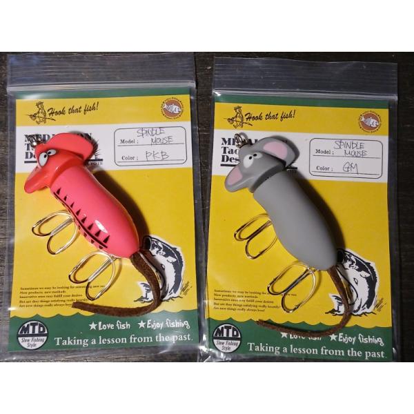 ロータリーヘッドタイプのプラグ。ただ巻きはもちろんのこと、テーブルターンも得意です。 このプラグの元ネタはおそらくアメリカンルアーの「ミスターマウス」。あれはヘッドの裏側に爪が仕込まれていて、ボディとの摩擦音がキーキーと鳴る仕組みでした。ネズミの鳴き声を模した画期的なプラグでしたが、その機構ゆえに頭が重く、すぐ潜ってしまうのが欠点でもありました。 スピンドルマウスでは爪は採用せず、あくまでトップウォーターでの操作性を重視した設計になっています。