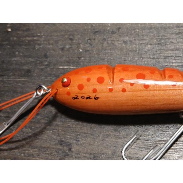 【 メーカーコメント:羽鳥氏の初期作品『クルヴェイト』のオマージュ。30年程前に模倣した習作をもとに独自のアレンジで再構築した作品。エビ(クルヴェイト)よりも大型のザリガニ(エクルヴィス)をイメージしたもの。スローリトリーブで水面直下をウォブリングさせるのが基本的な使い方だが水面でのトリッキーなスライドや、ジャークで控えめなポップ音など、サーフェイスプラグとして、多才な演出が可能である。 hand shape & painted by kenji.k 2026 】