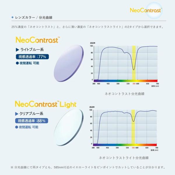 交換用遠近両用メガネレンズ 度なし・度つき ネオコントラストレンズ ナイトドライブ 夜間運転可 ヘッドライト