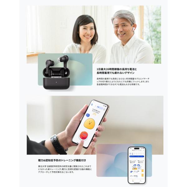 最大音響利得は60dBで多くの聞こえのお悩みをサポート。
