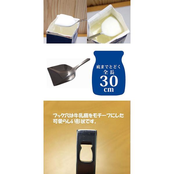 ●牛乳パックよりも長いロングタイプのスプーン。牛乳パックの底まで届きます。