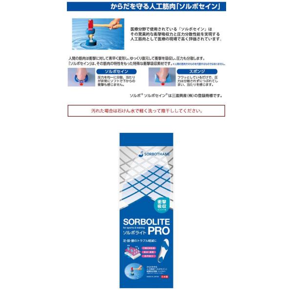 ◆医療の現場で使用されている衝撃吸収素材、人工筋肉「ソルボセイン」を使用したインソールです。