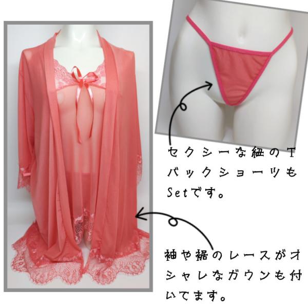 透け感の高いベビードールと、その上に羽織るガウンもセットになっている非常に完成度の高い商品です。