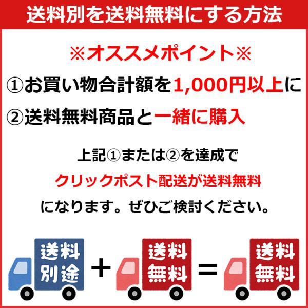 こちらは送料別商品ですが、商品合計1000円以上、または送料無料消費品との同時購入で「クリックポスト送料無料」でお届けします。