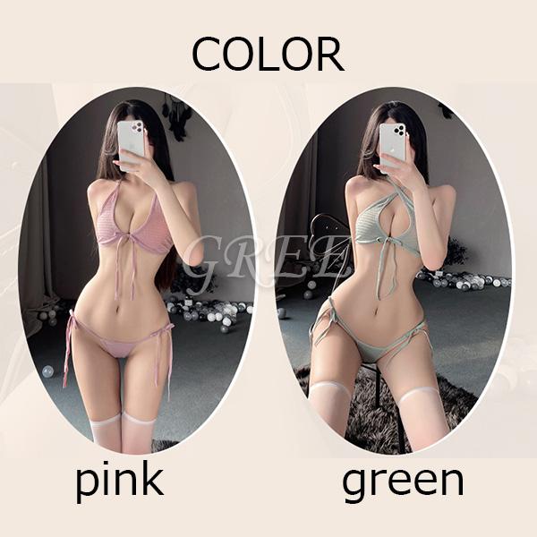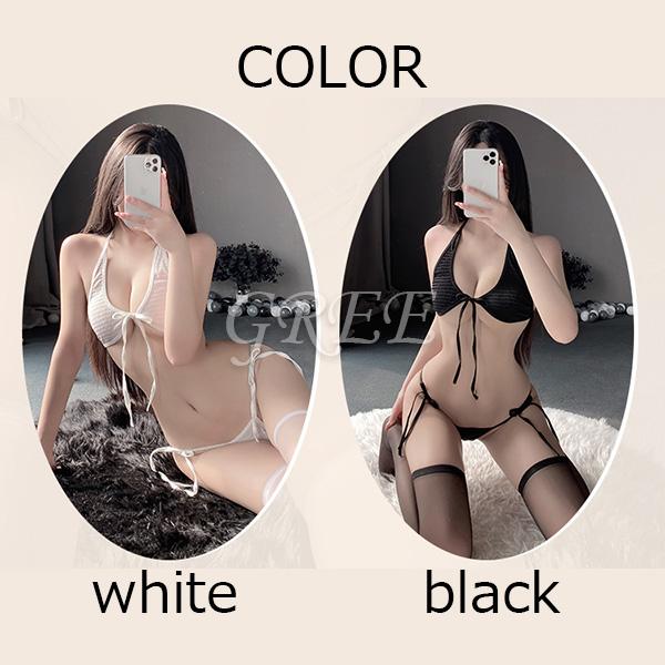 セクシーランジェリー フリーサイズ レディース シンプルデザイン 紐パンツ 紐 下着 水着風 薄い生地 透け感 安い 激安 上下セット ブラ ショーツ セット 男ウケ