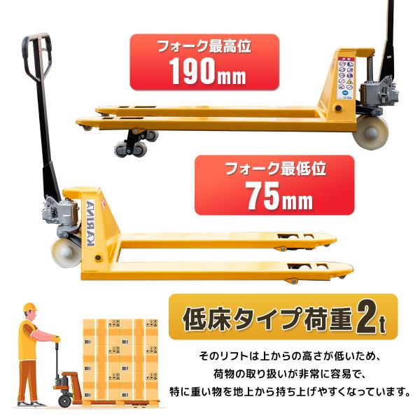 低床式 ハンドリフト 幅680mm ハンドフォークリフト 2000kg トラックハンドリフト パレット 油圧式 リフト 耐荷重 2t ハンドリフター