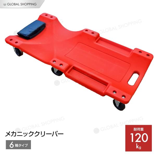 メカニッククリーパー サイドポケット付き 耐荷重120kg 寝板 低床クリーパー 自動車メンテ作業用 工具専用トレイ 軽量 6輪