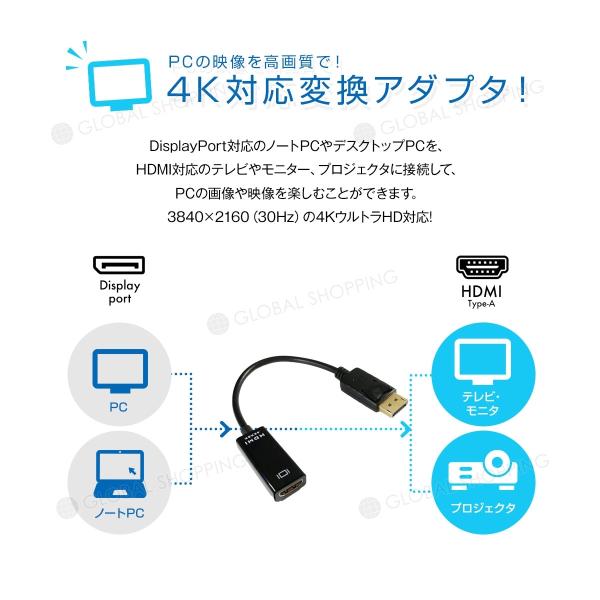DisplayPort HDMI 変換アダプタ 変換コネクタ 変換ケーブル 4K ウルトラHD UHD 1080P フルHD FHD ディスプレイポート ケーブル テレビ 接続 オス メス
