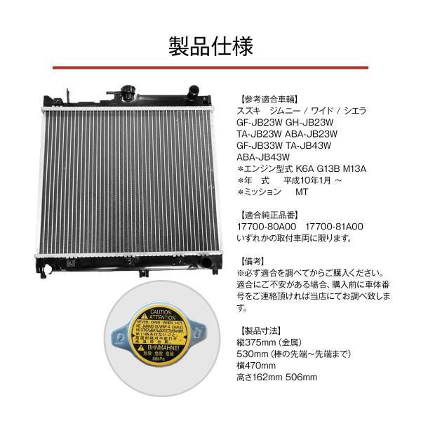 スズキ ジムニー シエラ/ワイド JB23W JB33W JB43W MT ラジエーター 17700-80A00 17700-81A00