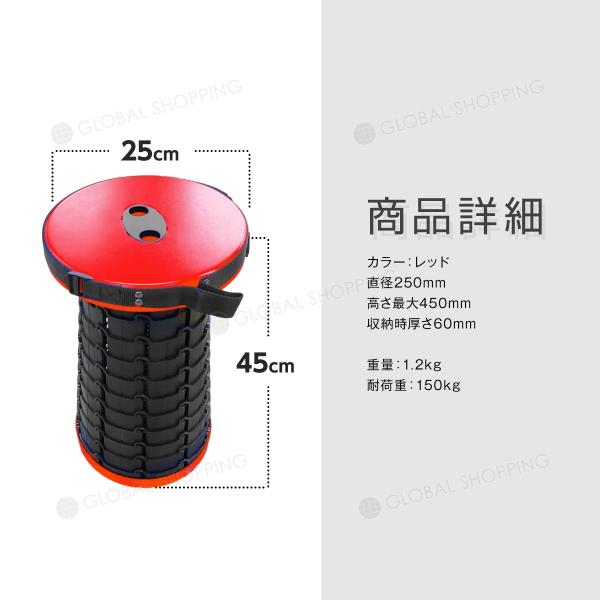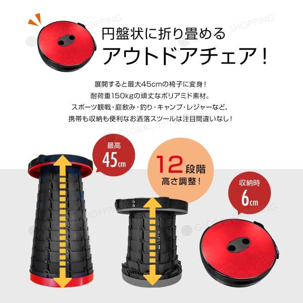 一秒開閉 超軽量 アウトドアチェア 折りたたみチェア キャンプ椅子 折り畳み式 チェア 6.5cm-46cm 高度自由 耐荷重100? 伸縮式 スツール 赤