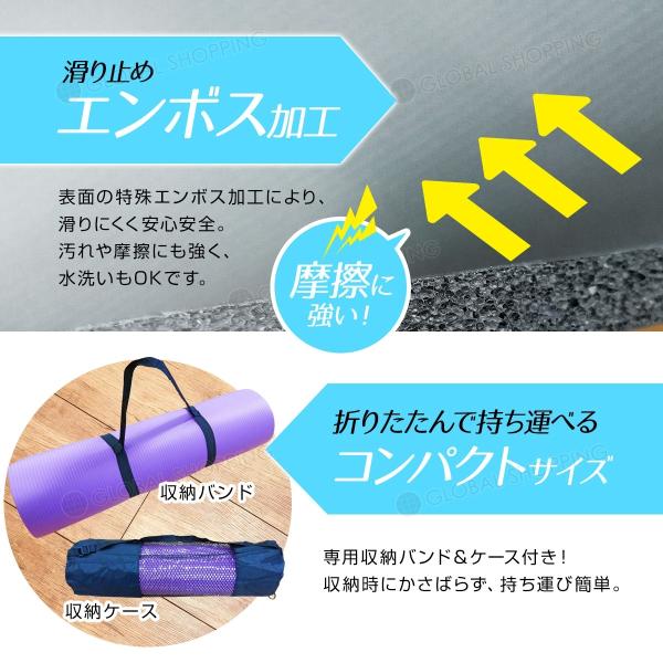 ヨガマット 10mm トレーニングマット 185×61×1cm ピラティス エクササイズマット ゴム 収納バンド付 ダイエット器具 yoga 腹筋 脚痩せ フィットネス 黒