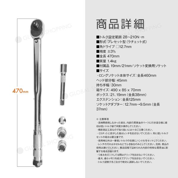 車用工具 トルクレンチセット プリセット式 28-210N M タイヤ 整備用 作業工具 工具 19mm 21mmソケット エクステンションバー付属