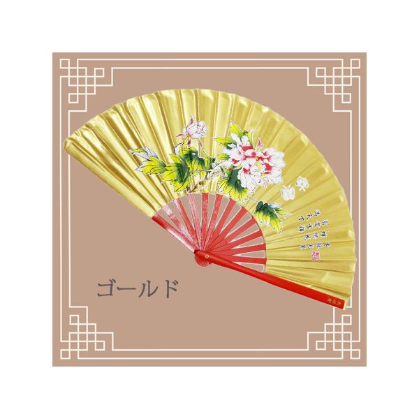 高級単扇子 太極扇 牡丹 ボタン 全長約35cm竹製 袋付き 太極拳扇 太極拳扇子