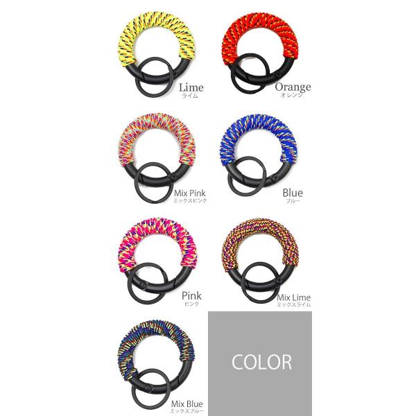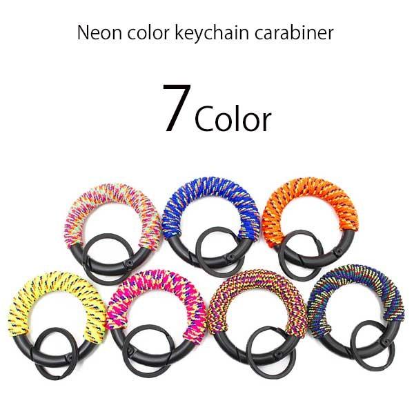 キーホルダー カラビナ ネオンカラー 蛍光色 丸形 キーリング 小物 アクセサリー 鍵 コング