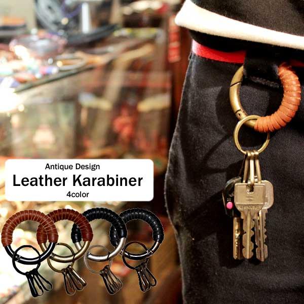 キーリング アンティーク風 デザイン レザーカラビナ 本革 メンズ Leather カラビナ 鍵付け替え 鍵収納 keyholder コング 鍵