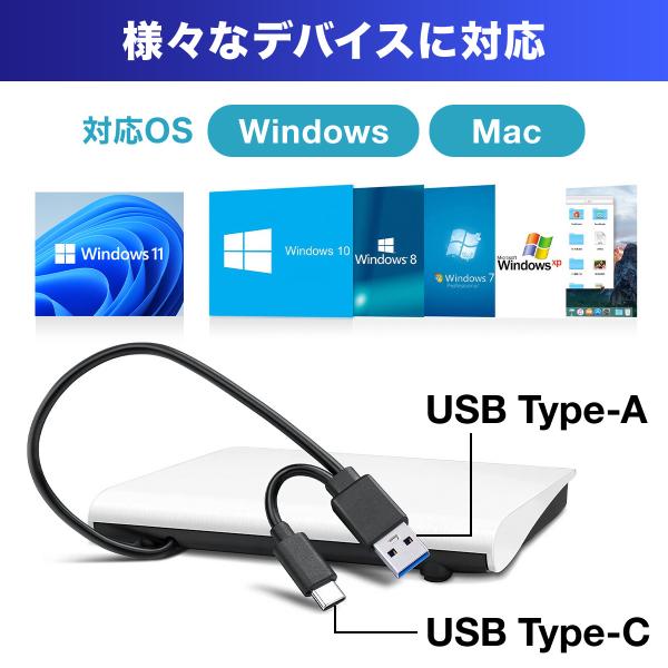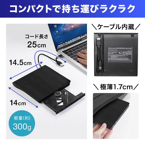 dvdドライブ 外付けdvdドライブ cdドライブ USB3.0 Type-C パソコン windows mac 対応 静音 高速 軽量