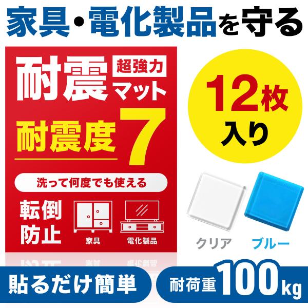 家具転倒防止 地震対策 耐震マット 耐震ジェルマット テレビ転倒防止 冷蔵庫 防災 震度7対応 地震対策グッズ 耐荷重100kg 厚め 12枚