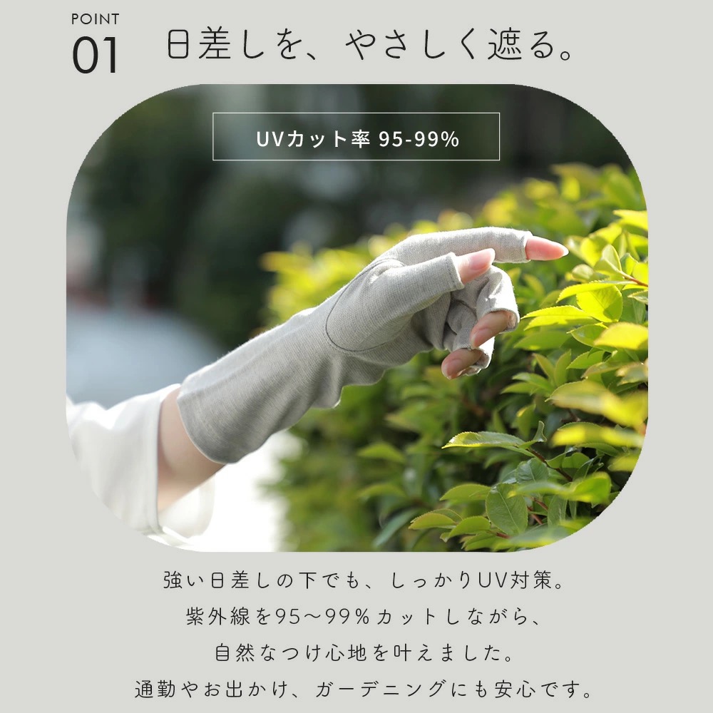 紫外線95〜99%以上カット(生地の色によりカット率が異なります)通勤・ドライブ・ガーデニングなど紫外線からしっかりガード。
